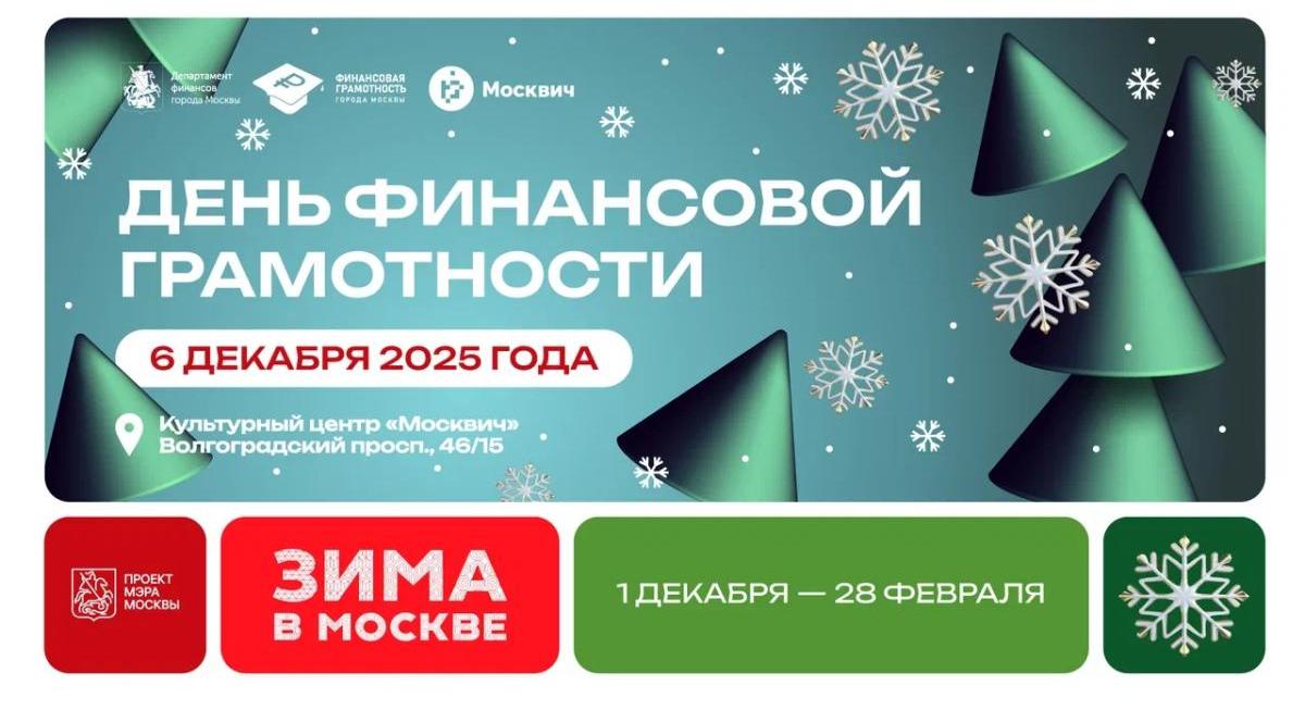 6 декабря 2025 года в культурном центре «Москвич» в рамках проекта «Зима в Москве» пройдет масштабное просветительское мероприятие для всей семьи – День финансовой грамотности.