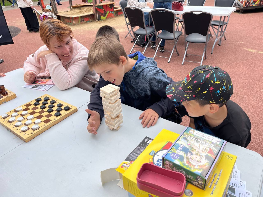 Для юных посетителей площадки сотрудники библиотеки провели настольную игротеку, где ведущие продемонстрировали наиболее интересные интеллектуальные и развивающие игры, а участники получили возможность попробовать свои силы, сразившись в командах. Гости были приглашены в библиотеку.