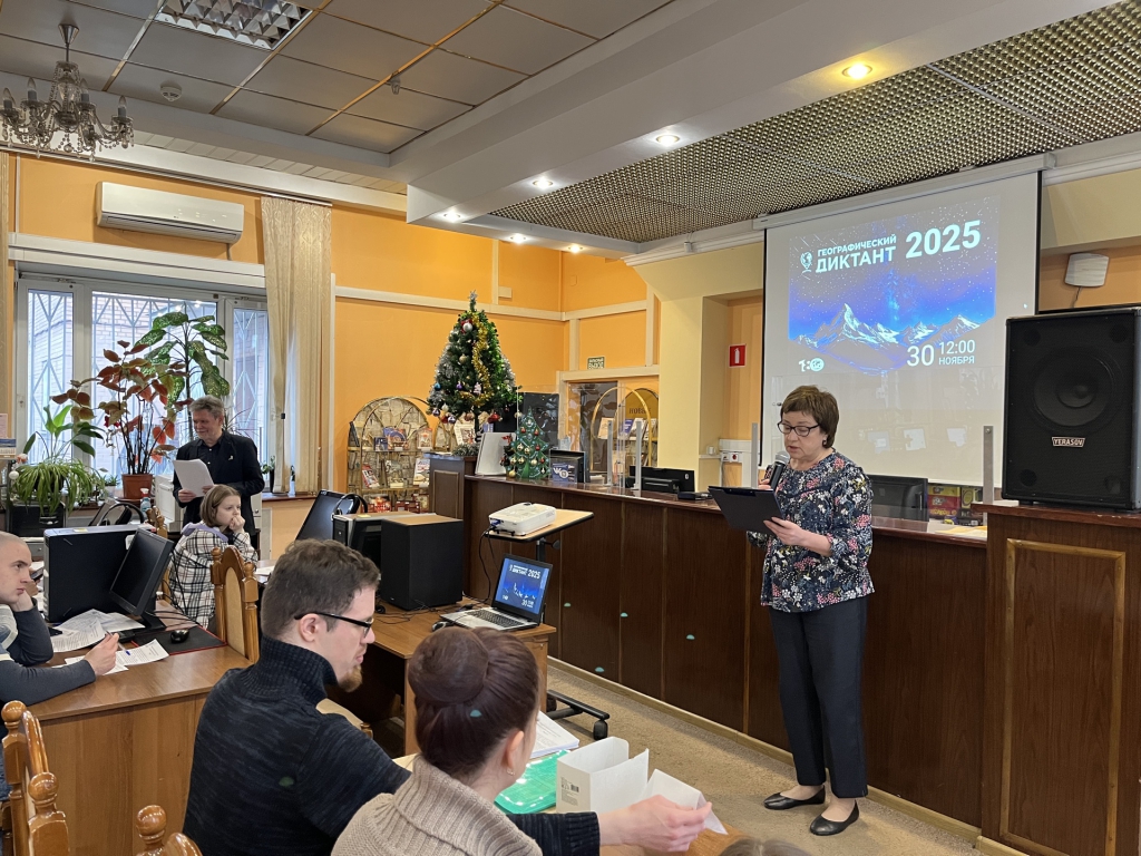 30 ноября 2025 года в Центральной Городской Деловой Библиотеке состоялся Географический диктант–ежегодная международная просветительская акция, организованная Русским географическим обществом в 2015 году.