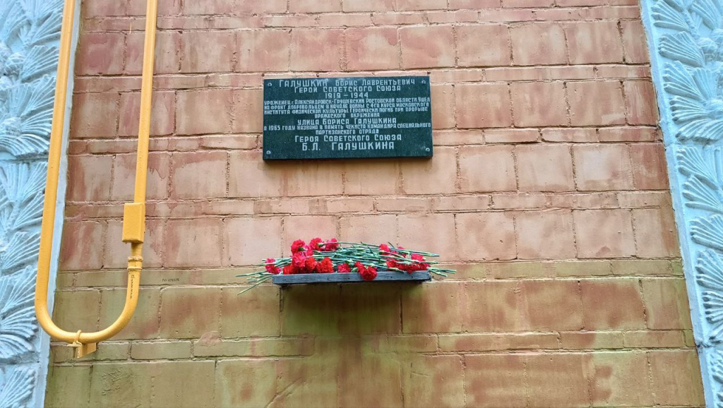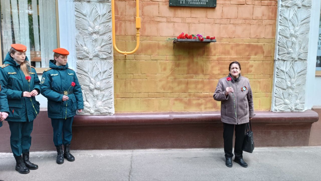 Участники акции почтили минутой молчания память павших и возложили цветы. Торжественное мероприятие и возложение цветов состоялось у дома № 17 на улице Бориса Галушкина, где расположена памятная доска в честь названия улицы именем Героя Советского Союза Бориса Галушкина.
