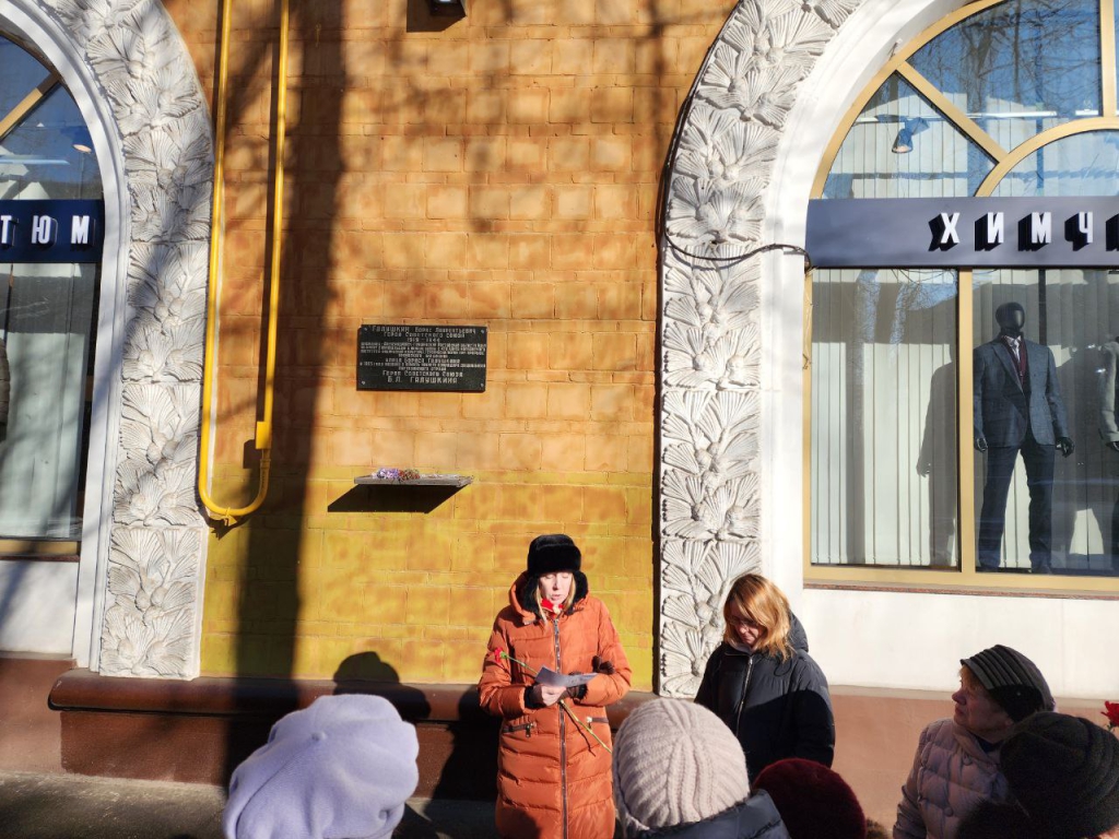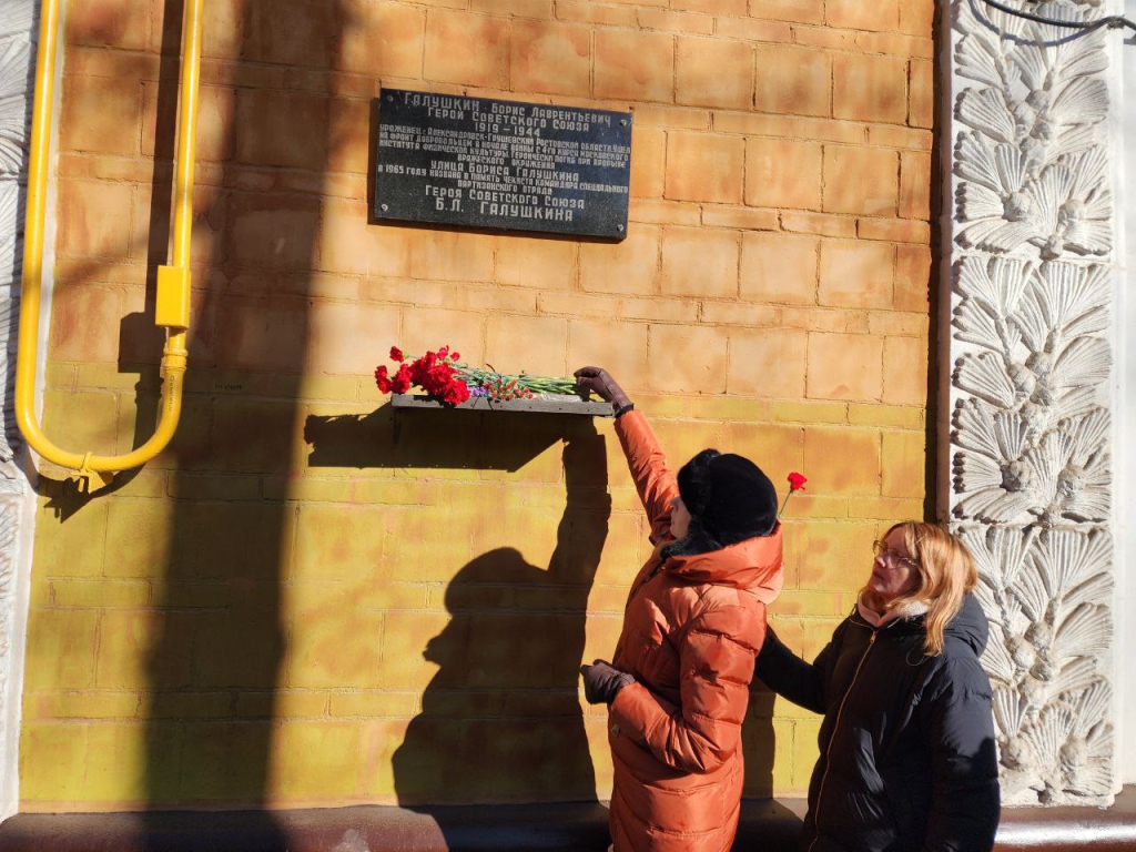 Торжественное мероприятие и возложение цветов состоялось у дома № 17 на улице Бориса Галушкина, где расположена памятная доска в честь названия улицы именем Героя Советского Союза Бориса Галушкина.