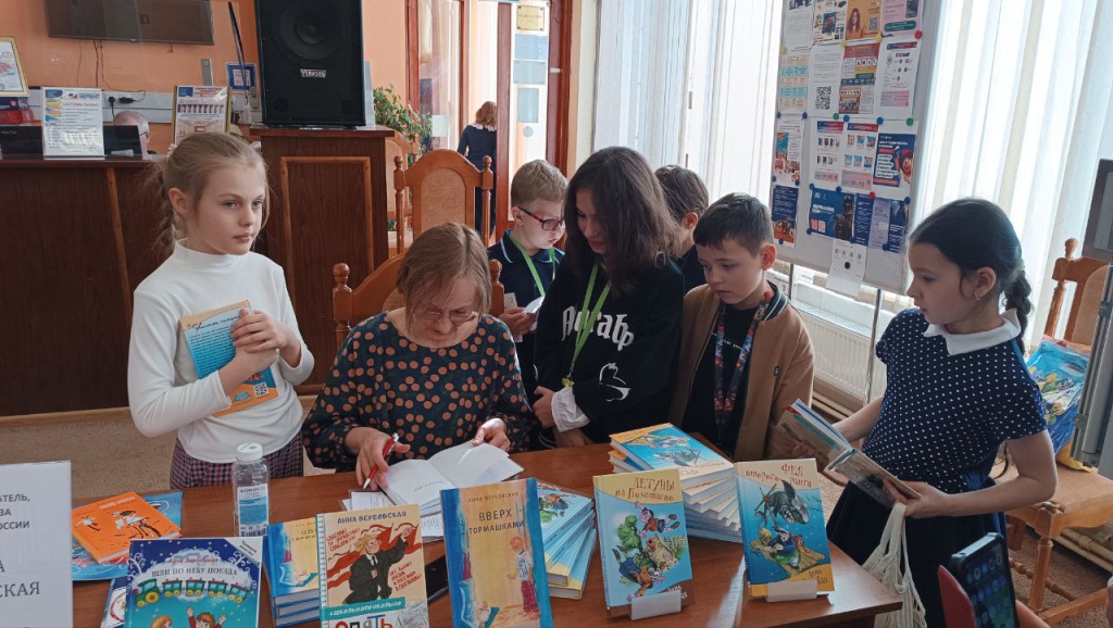 Ребята также узнали о других увлечениях писателя–Анна любит вязать, прекрасно рисует, шьёт милые игрушки из разных материалов с разным настроением, а также с увлечением занимается художественной керамикой. В заключение встречи ребята засыпали её своими вопросами, потом желающие получили книгу с пожеланием и автографом и, конечно сделали памятную фотографию.